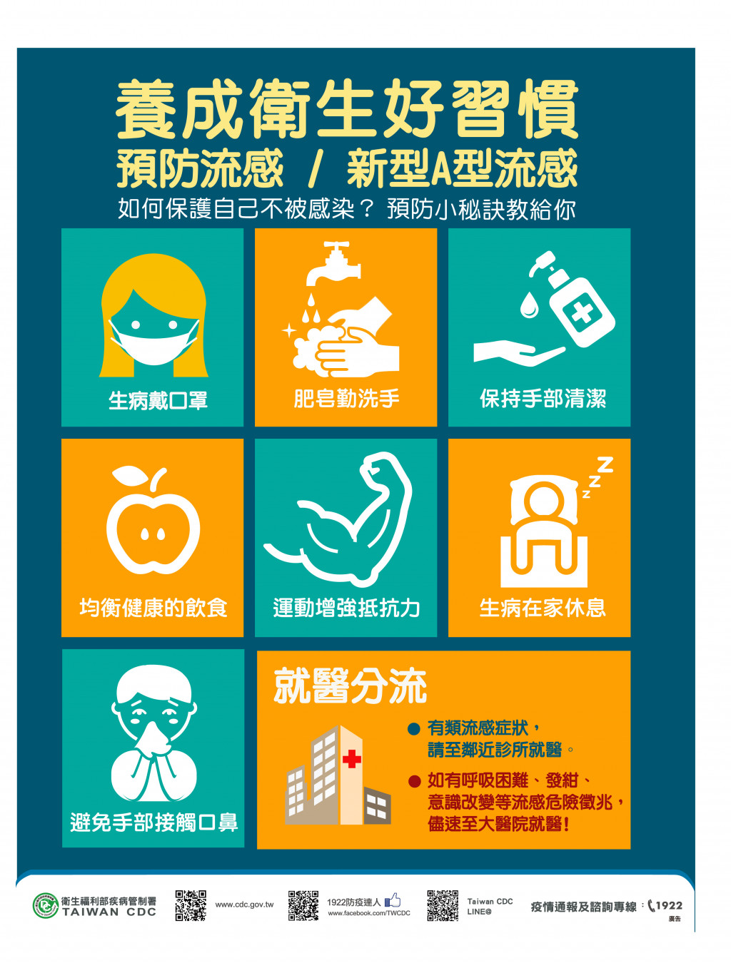 | 三、 | 請逕至前揭網站瀏覽或下載旨揭手冊,並運用於校園流感各項防治策略與作為,包含加強衛生教育及宣導、掌握教職員工生之健康狀況及確實通報、落實「生病不上班、不上課」原則及感染管制措施等(詳如手冊第6章平時防治工作、流行高峰期防治作為、群聚事件之處理),以防範流感疫情於校園內傳播,維護教職員工生健康。 |